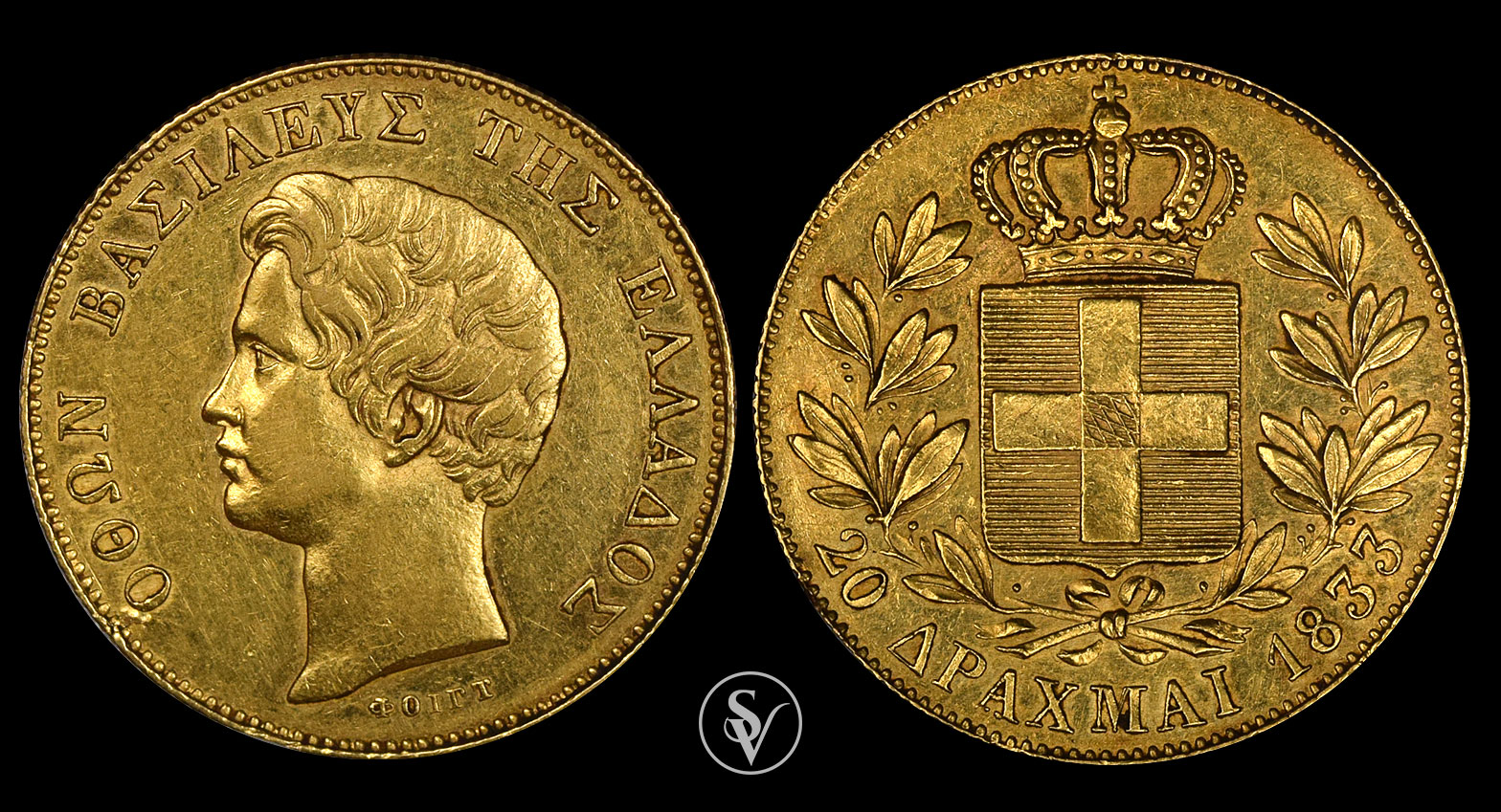 Το πρώτο χρυσό νόμισμα της σύγχρονης Ελλάδας κόπηκε το 1833 στο νομισματοκοπέιο του Μονάχου με τον βασιλιά Όθωνα.