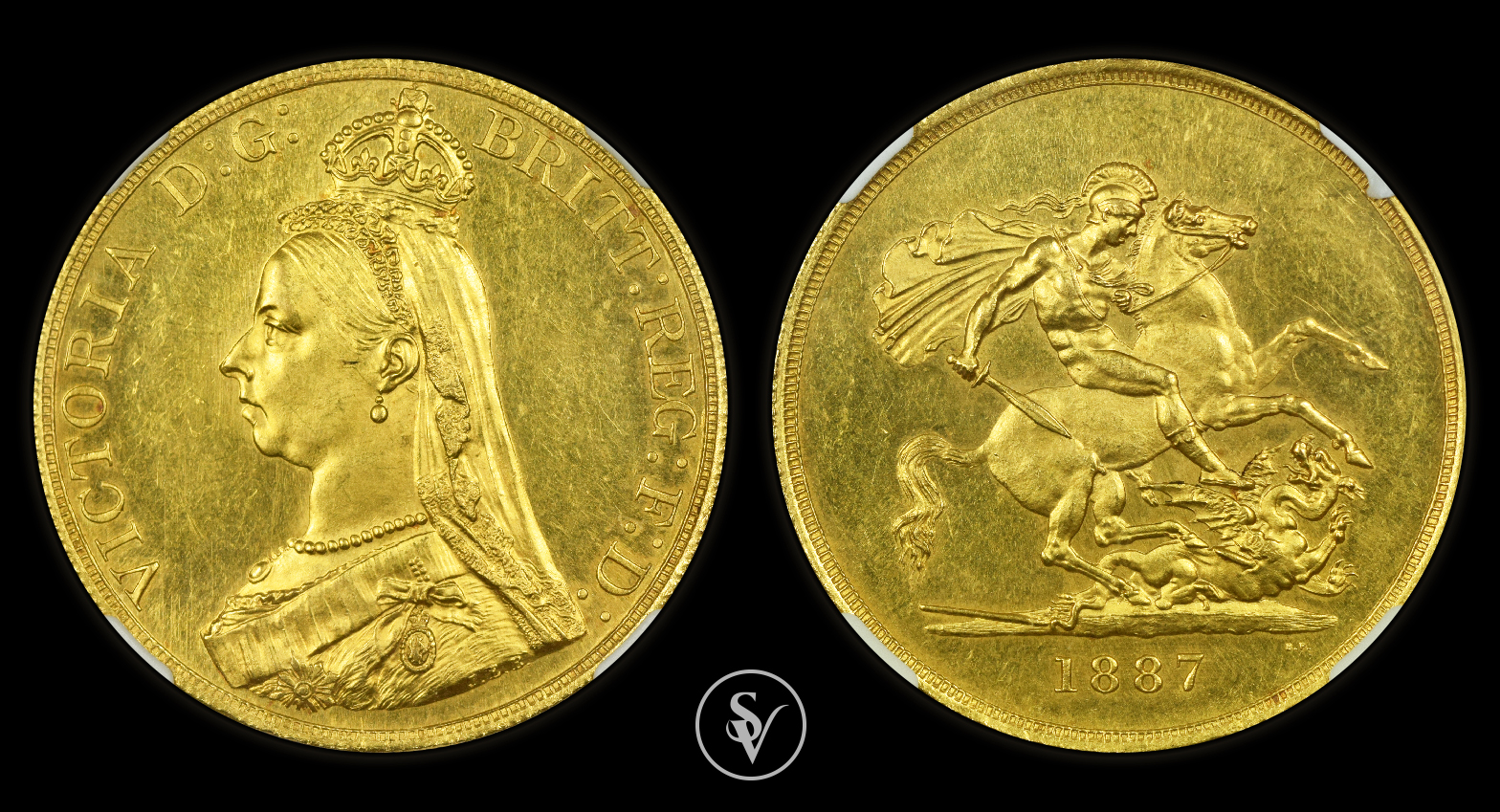 1887 χρυσό πεντόλιρο Βικτώριας με ιωβιλαίο πιστοποιημένο σε MS62 NGC