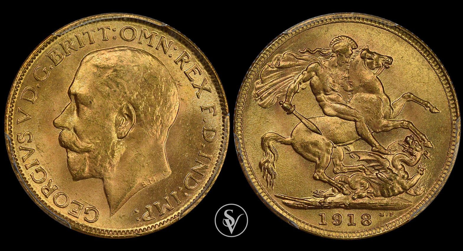 1918 χρυσή λίρα νομισματοκοπείου Ινδίας , πιστοποιημένη στον ανώτατο βαθμό ms65 PCGS.