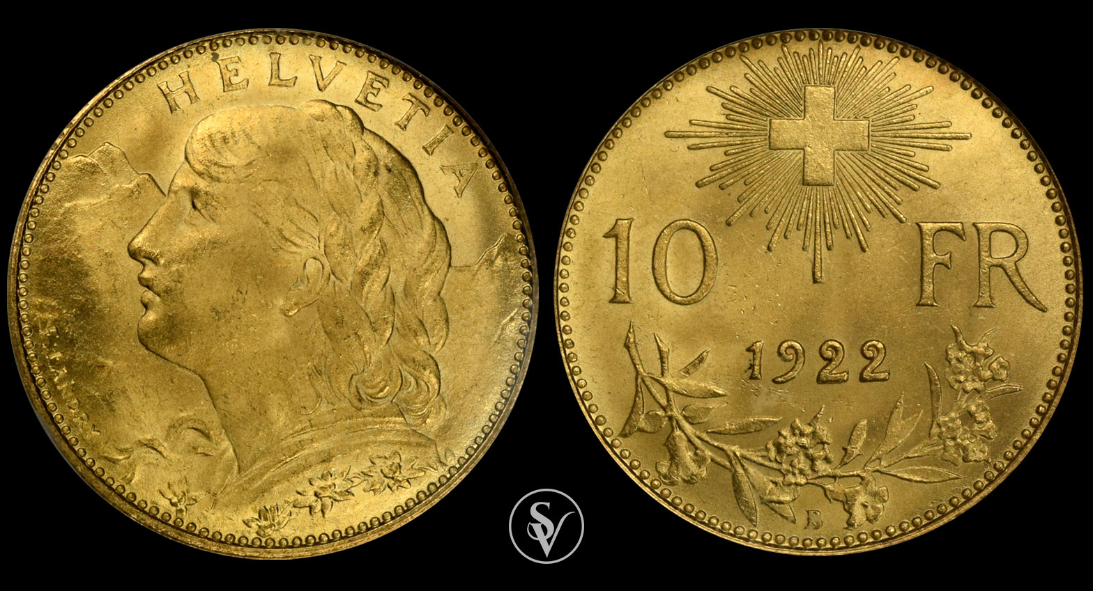 1922 χρυσό 10 φραγκα Ελβετία MS66 NGC