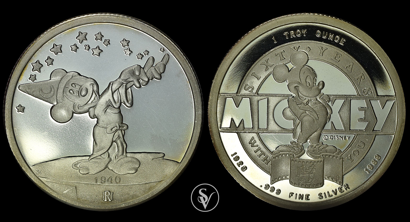 1940 Disney Mickey Ο μάγος 1 ουγγιά ασημένιο νόμισμα