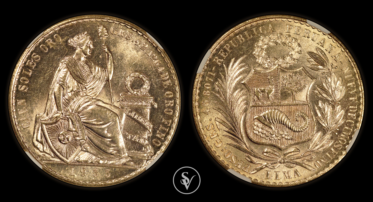 Χρυσό νόμισμα 1955 Peru 100 soles πιστοποιημένο σε MS63 NGC