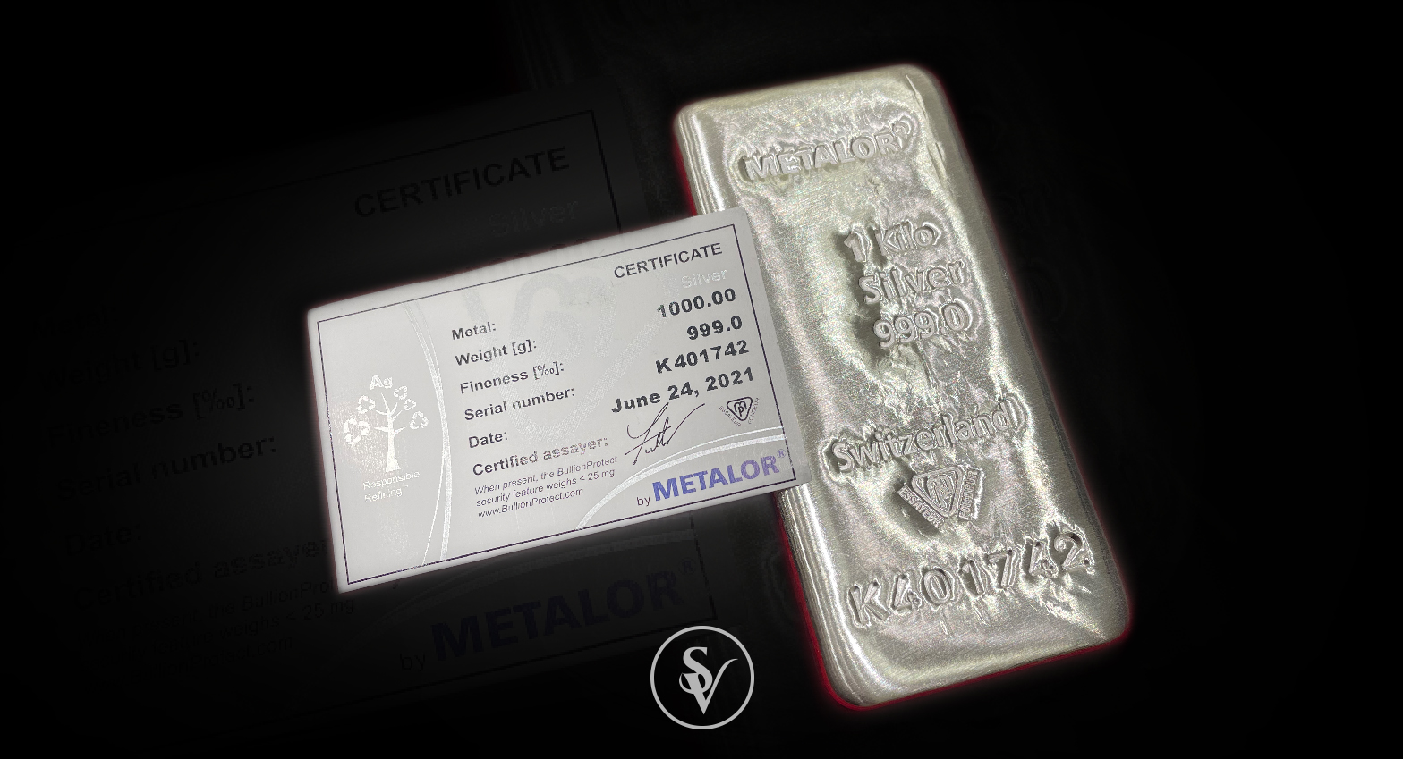 1 Ασημένια μπάρα 1 κιλού METALOR με πιστοποιητικό