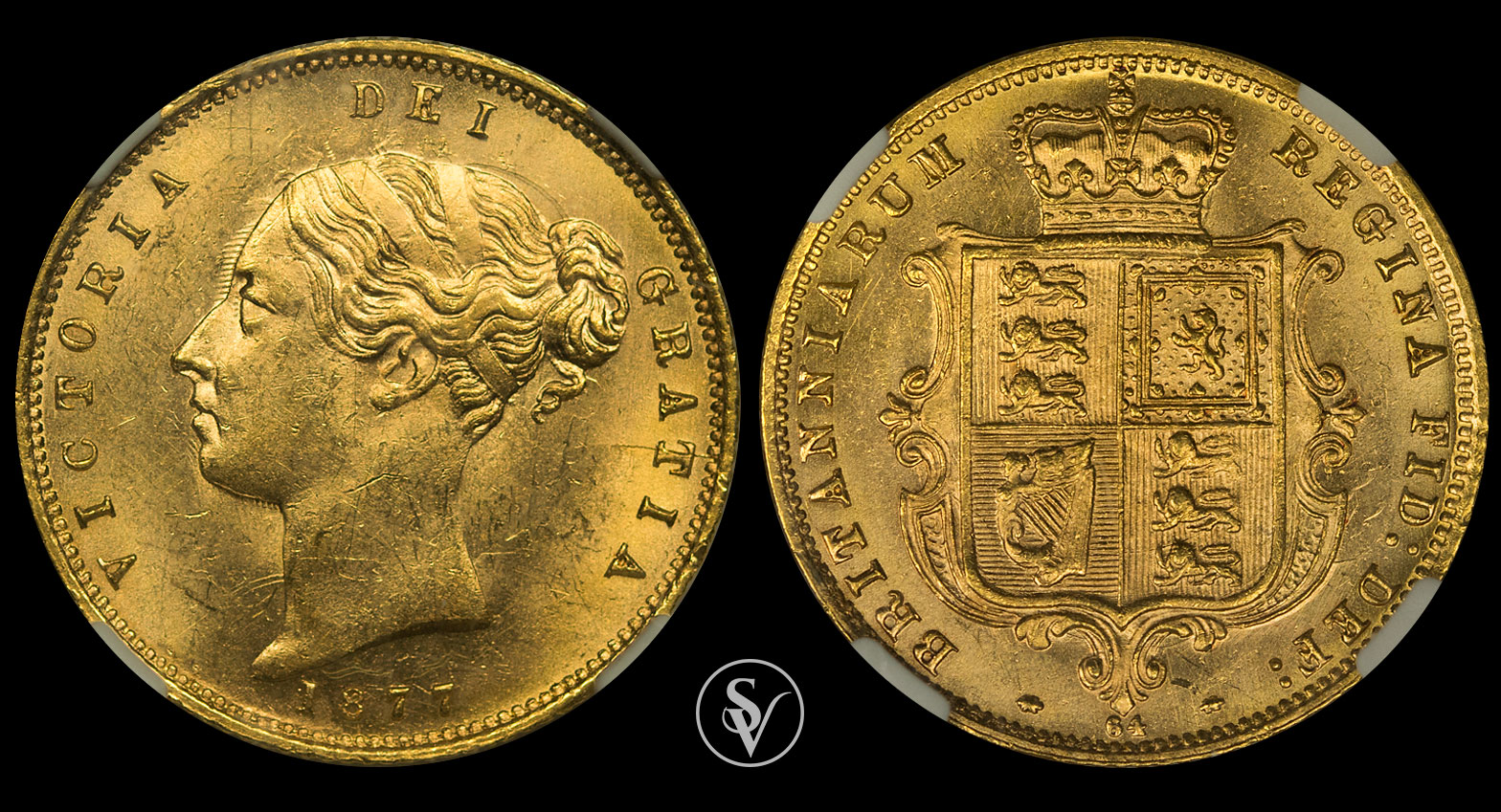 1877 Victoria gold half sovereign shield certified NGC MS63