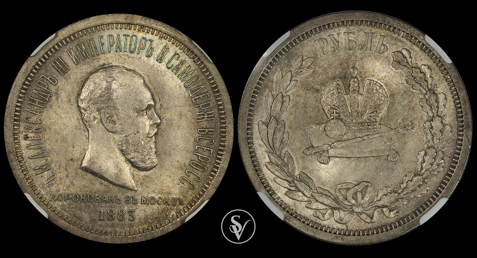 1883 Russia 1 Rouble - Aleksandr III Coronation certified by NGC MS62