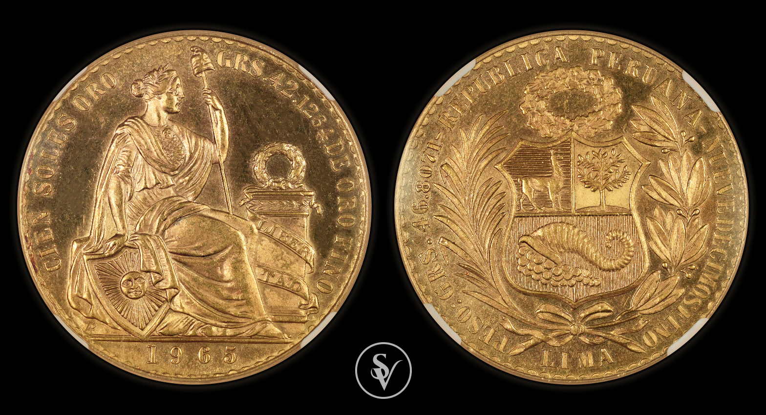 1965 Seated Liberty 100 soles gold Peru certified by NGC MS64
