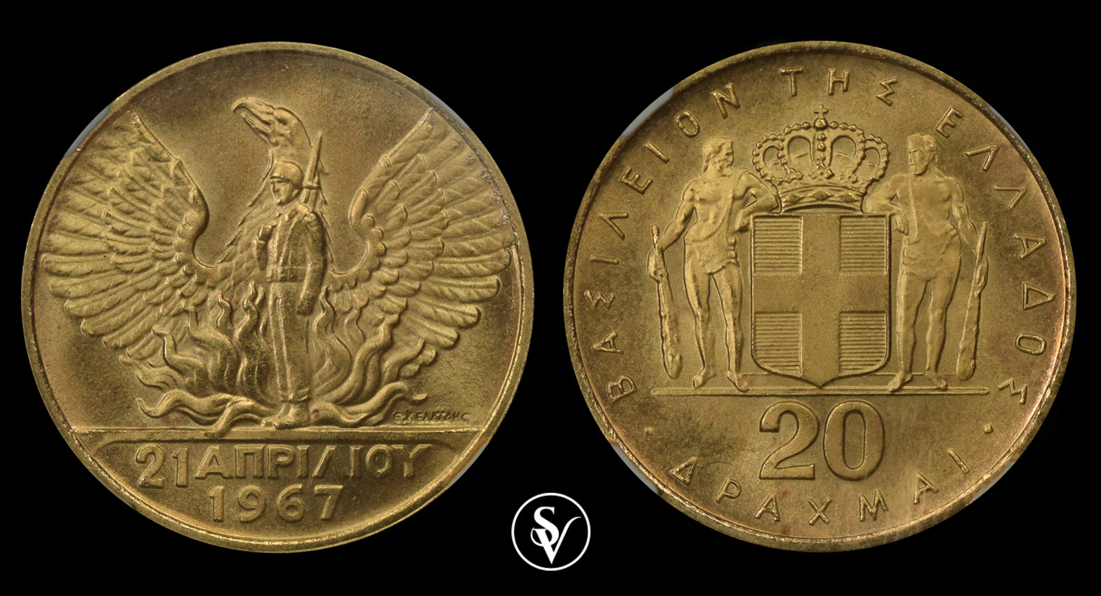 1967 20 Drachmai gold Constantine II Greece certified by NGC MS68