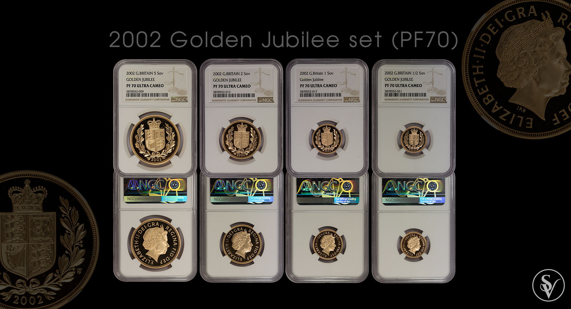 5 pound - 2 pounds - 1 sovereign - 1/2 sovereign