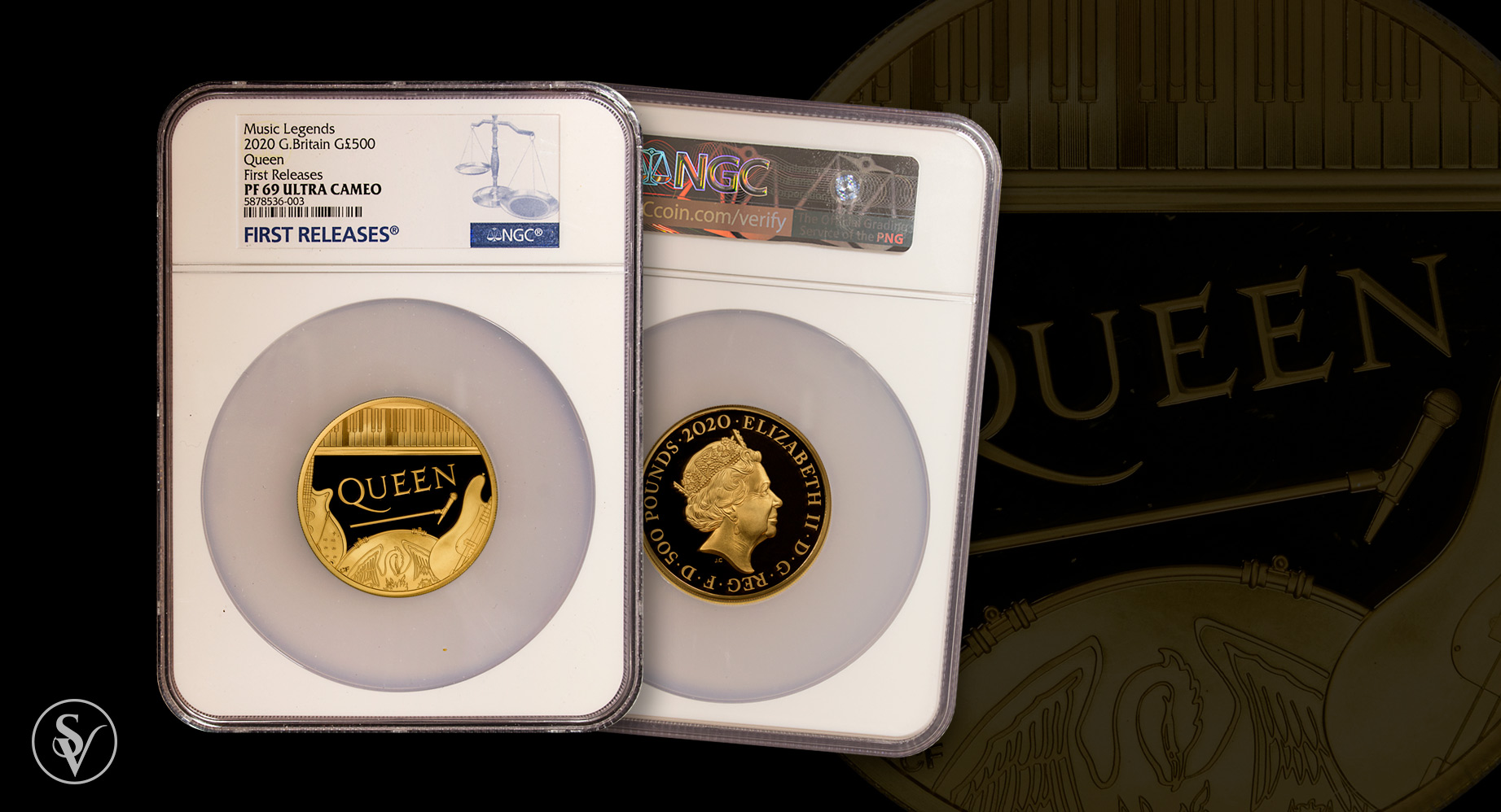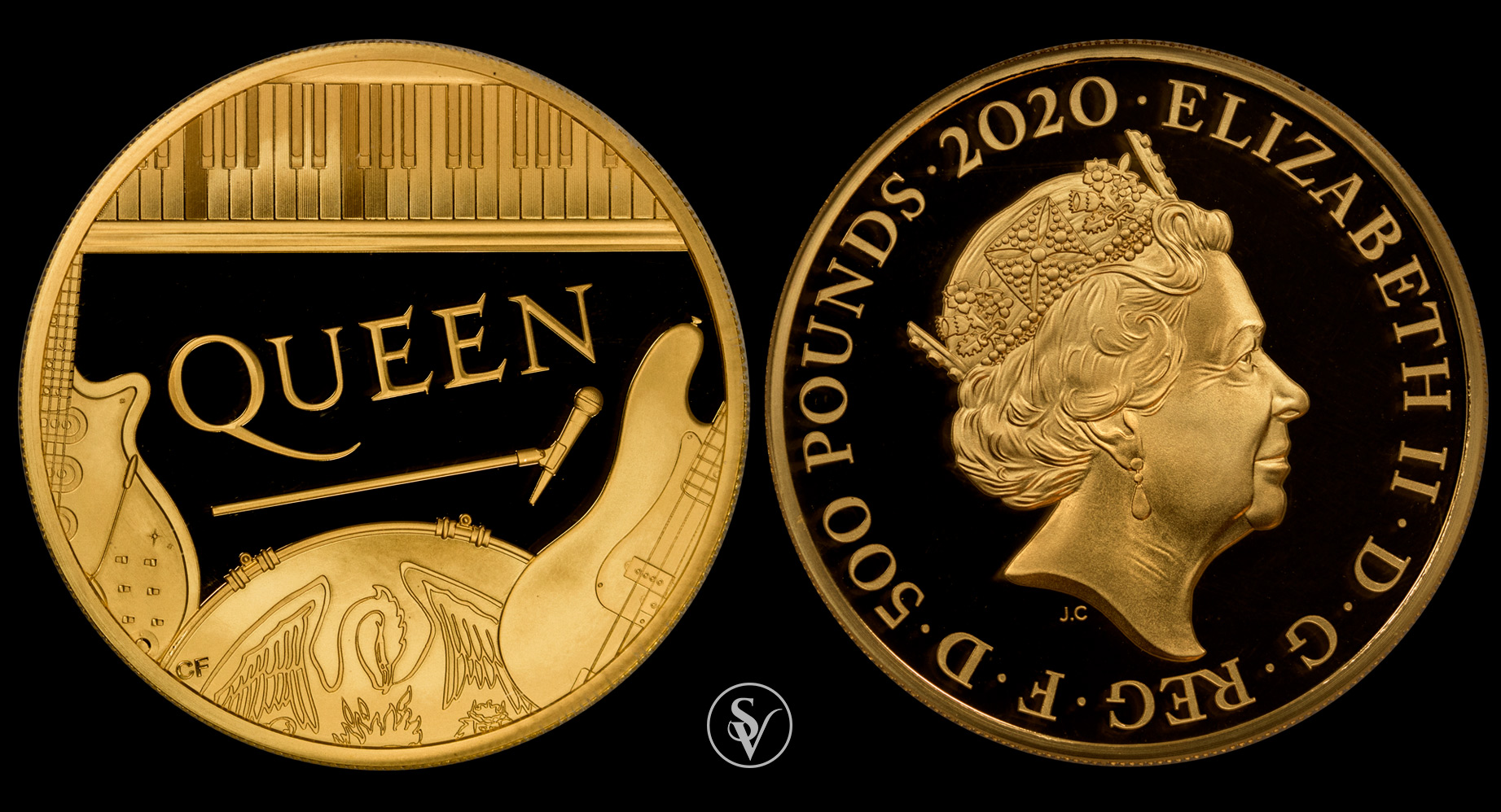 In 2020 to celebrate a new collection called Music Legends, the Royal Mint released the first coin in the series a Limited Issue Queen £500 Five Hundred Pound Gold Proof Coin struck in solid fine 999.9 Gold weighing five ounces of pure Gold.